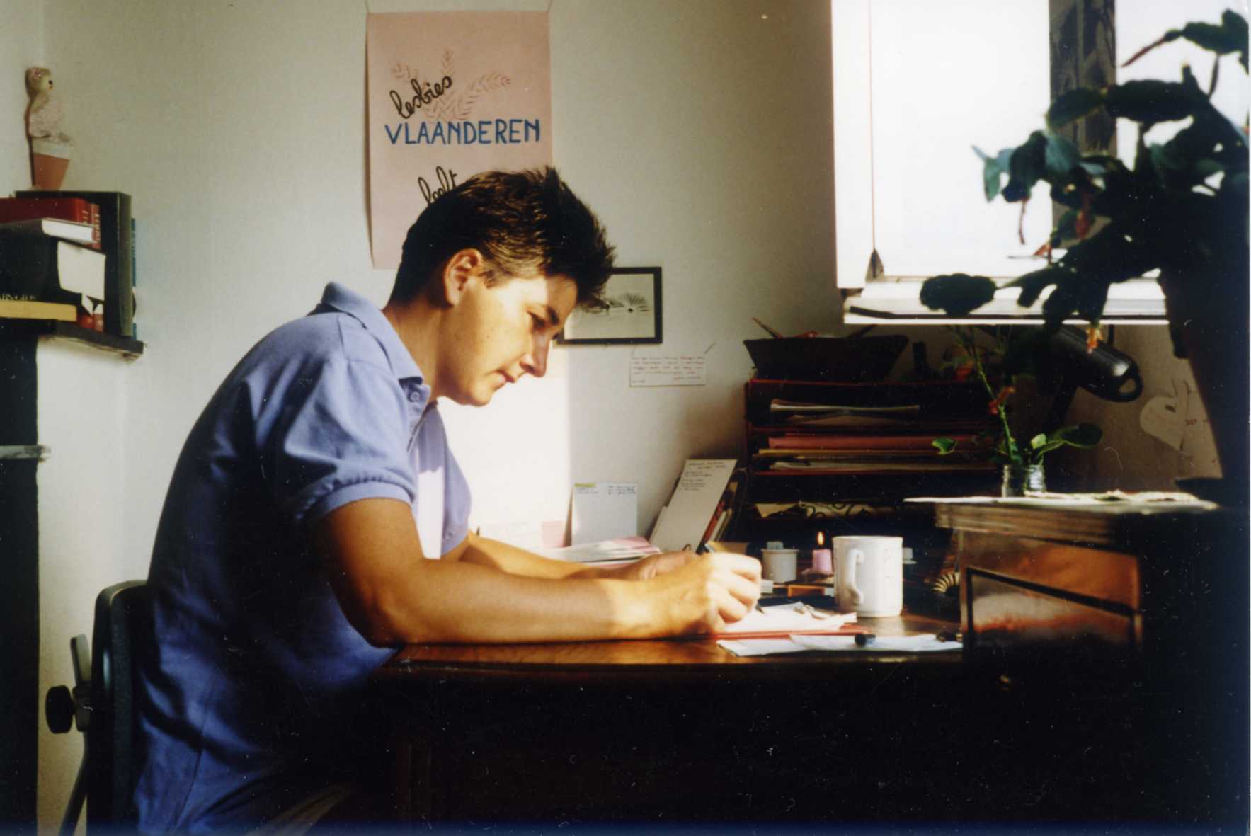 Majo: My name is Majo Van Ryckeghem. I am 75. I can’t believe it myself, but I have reached that age. And I now have a whole lesbian history behind me. I was married to a man. I have two children. We divorced when I was thirty. That was a very painful period. Not only for myself, but also for those around me. And then I gradually came into contact with feminism and lesbian support services. Together with other support workers, I wrote a few books. One was a book for housewives, entitled ‘Huisvrouw, een beroep met risico’s’. This was in response to the fact that women who are housewives are very often depressed. So, in fact, the common thread is always the influence of social factors: on women who work from home and on lesbian women. This led to ‘Thuiskomen: scènes uit lesbisch bestaan’.